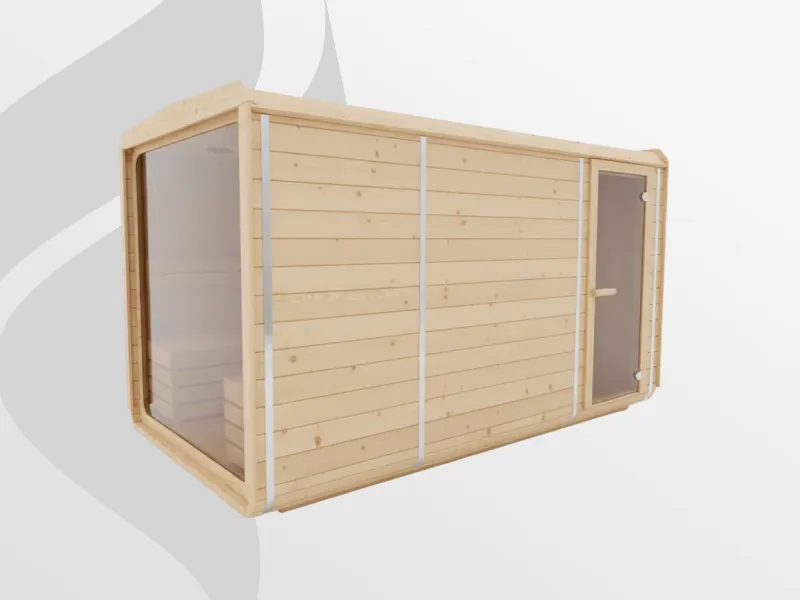 Dzięki takiemu układowi model 2 + 1 + 0,5 m gwarantuje wygodę użytkowania przez cały rok — przedsionek chroni wnętrze przed utratą ciepła, a taras dodaje całości uroku i funkcjonalności. Sauna wykonana z wysokiej jakości drewna świerkowego zachowuje naturalny wygląd, trwałość i doskonałe właściwości izolacyjne.
